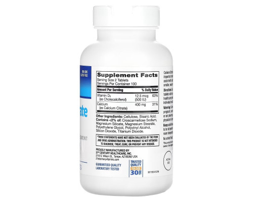 Компоненты добавки 21st Century Health Care Кальций цитрат + D3 200 таблетки с покрытием