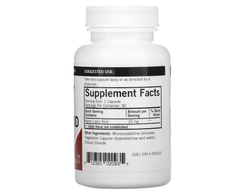 Описание добавки Kirkman Labs, Альфа-липоевая кислота, 25 мг, 90 капсул