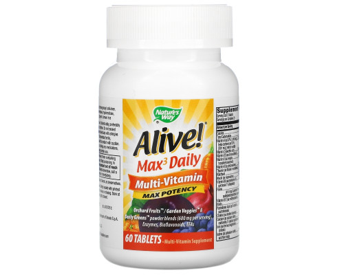 Описание добавки Nature's Way, Alive! Max3 Daily Multi-Vitamin, 60 Tablets