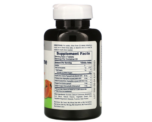 Компоненты добавки American Health, Энзим папайи с хлорофиллом, 250 жевательных таблеток