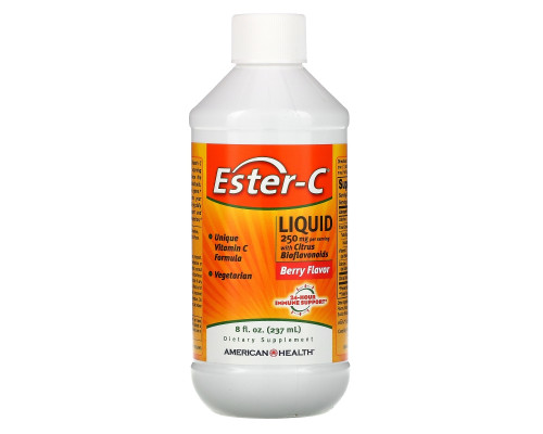Описание добавки American Health, Жидкий Эстер-C, с цитрусовыми биофлавонойдами, Вкус ягод, 8 жидких унций (237 мл)