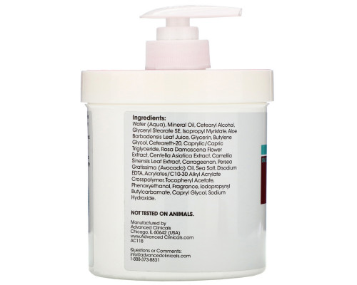 Компоненты добавки Advanced Clinicals, Anti-Aging Rescue Cream, Bulgarian Rose, 16 oz (454 g)