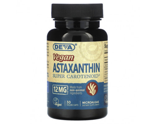 30 шт.Описание добавки Антиоксиданты Deva, Веганский астаксантин и суперкаротиноид, 12 мг, 30 веганских капсул