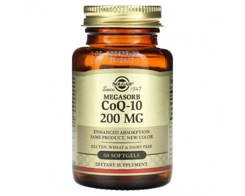 Компоненты добавки Антиоксиданты Solgar, Megasorb CoQ-10, 200 мг, 60 мягких таблеток