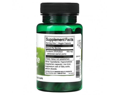Компоненты добавки Антиоксиданты Swanson, Портулак полного спектра, 400 мг, 60 вегетарианских капсул