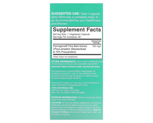 Компоненты добавки Антиоксиданты Viva Naturals, French-Maritime Pycnogenol`` 60 растительных капсул