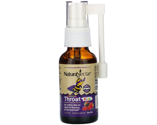 Способ приёма, инструкция применения добавки NaturaNectar, Bee Hero Throat Kids, Natural Propolis Spray, Berry Blast, 30 ml