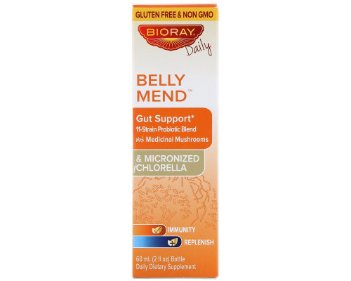 Описание добавки BioRay Inc., Belly Mend, Gut Love & Support, Alcohol Free, 2 fl oz (60 ml)