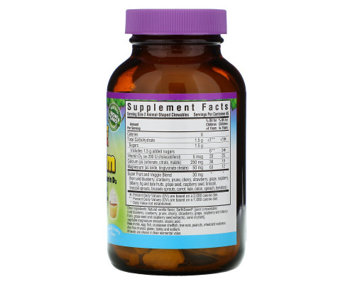 Компоненты добавки Bluebonnet Nutrition Super Earth тропические животные кальций со вкусом натуральной морозной ванили 90 жевательных таблеток