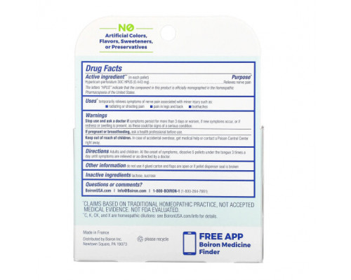 Способ приёма, инструкция применения добавки Болеутоляющие и противовоспалительные средства Boiron, Hypericum, средство для снятия нервной боли, гранулы Meltaway, 30C, 3 тюбика, 80 гранул в каждой