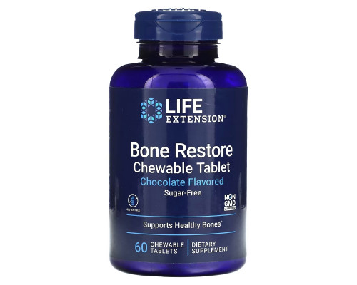 Описание добавки Life Extension, Bone Restore, Sugar-Free, Chocolate, 60 Chewable Tablets