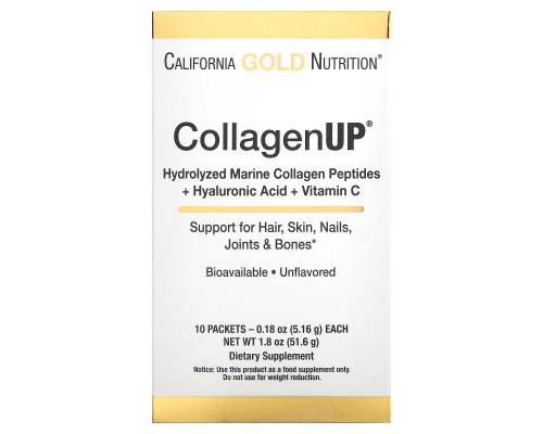 Компоненты добавки California Gold Nutrition, CollagenUp, без ароматизаторов, 10 пакетиков, 0,18 унции (5,15 г) каждый