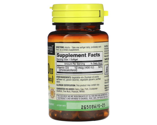 Описание добавки Mason Natural, D400 МЕ, 100 мягких таблеток