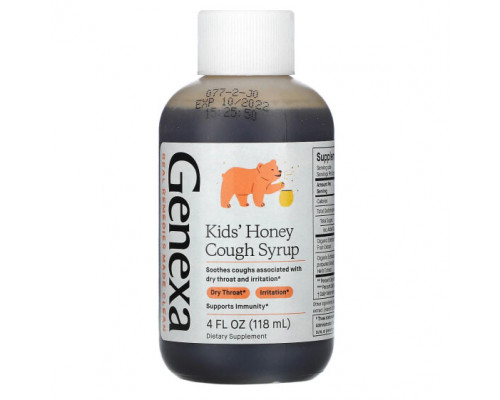 Компоненты добавки Детское здоровье Genexa LLC, Kid's Honey, сироп от кашля, для детей от 1 года, органический мед, 118 мл (4 жидк. Унции)