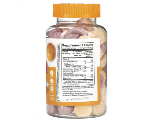 Компоненты добавки Детское здоровье Lifeable, Кальций и витамин D3 для детей, фрукты, 250 мг, 60 жевательных таблеток
