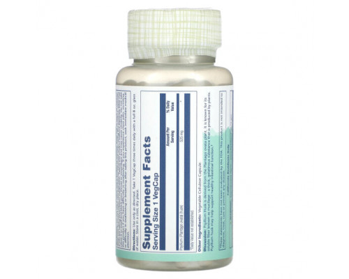 100 шт.Описание добавки Для пищеварительной системы Solaray, Шелуха семян подорожника, 525 мг, 100 растительных капсул