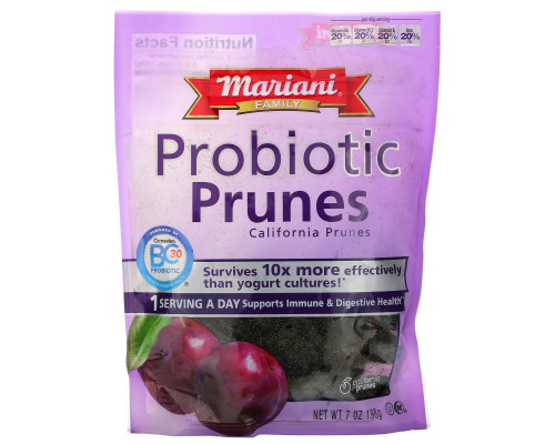 7 унцийОписание добавки Mariani Dried Fruit, Family, Probiotic Prunes, 7 oz (198 g)