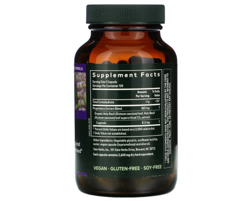Компоненты добавки Gaia Herbs Листья базилика 120 растительных фитокапсул с жидкостью внутри