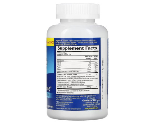 Компоненты добавки Garden of Life Primal Defense формула с пробиотиками ГПО 216 капсуловидных таблеток