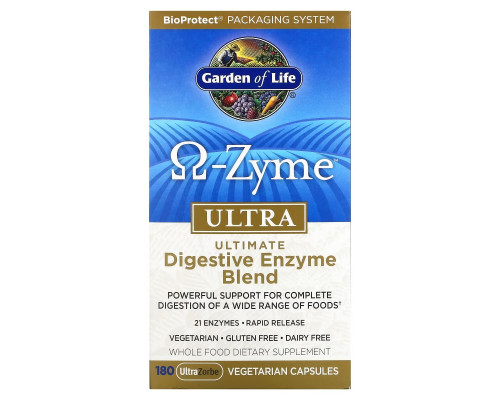 Компоненты добавки Garden of Life Ω-Zyme Ultra Комплекс пищеварительных ферментов 180 вегетарианских капсул UltraZorbe