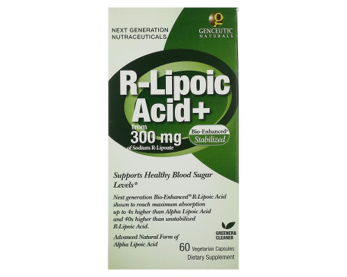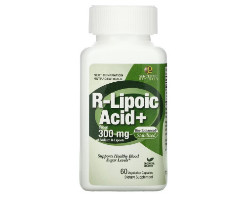 60 шт.Описание добавки Genceutic Naturals, R-липоевая кислота, 300 мг, 60 капсул