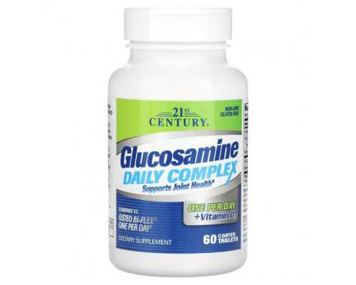Компоненты добавки Глюкозамин, Хондроитин, МСМ 21st Century, Ежедневный комплекс с глюкозамином, 60 таблеток, покрытых оболочкой