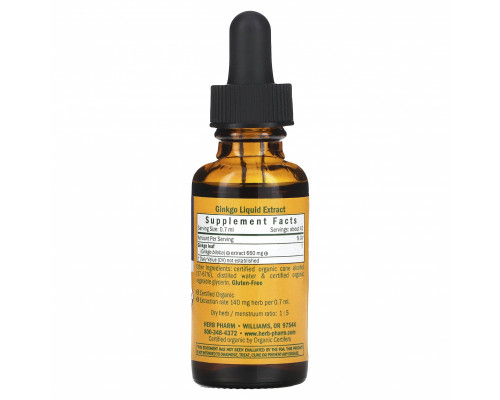 1 жидких унцийОписание добавки Herb Pharm, Гинкго билоба, 30 мл (1 жидк. Унция)