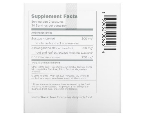 Компоненты добавки HVMN, Rise`` 60 капсул