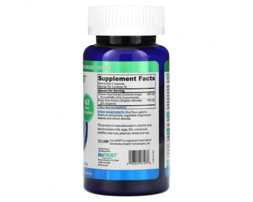 Компоненты добавки Имбирь и куркума BioTRUST, Ageless куркума, 60 капсул