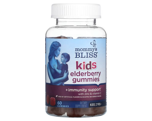 60 шт.Описание добавки Mommy's Bliss, Kids, Elderberry Gummies + Immunity Support, 60 Gummies