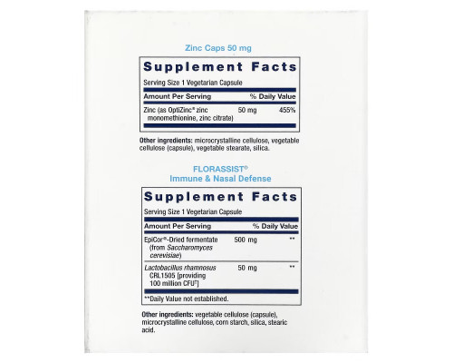 | Цинк (в виде цитрата цинка, монометионина цинка OptiZinc®) | 50 мг | 455% |