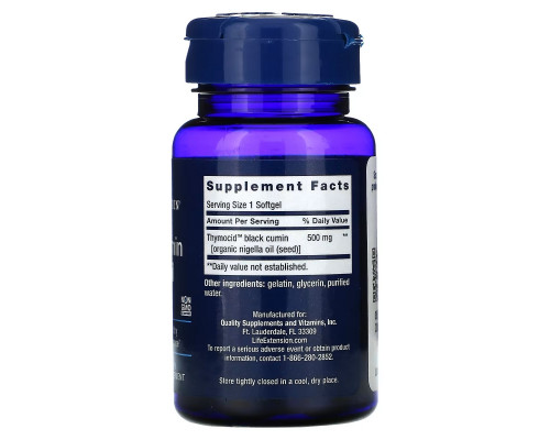 Компоненты добавки Life Extension Масло семян черного тмина 60 жевательных капсул