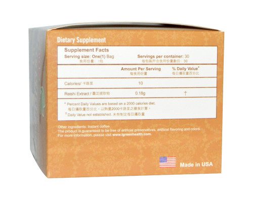 Компоненты добавки Longreen Corporation 2 в 1 быстрорастворимый колумбийский кофе с экстрактом гриба рейши 30 пакетиков по 65.4г каждый
