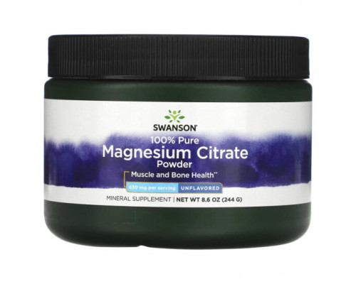 Компоненты добавки Магний Swanson, 100% чистый цитрат магния, без добавок, 630 мг, 244 г (8,6 унции)
