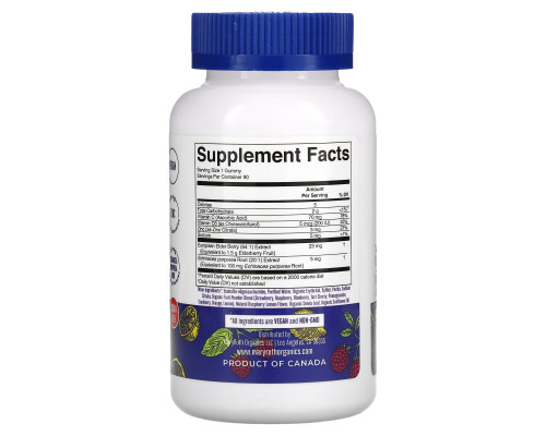 Компоненты добавки MaryRuth Organics, Immunity Gummies, Pectin Based, Raspberry Lemonade, 90 Gummies