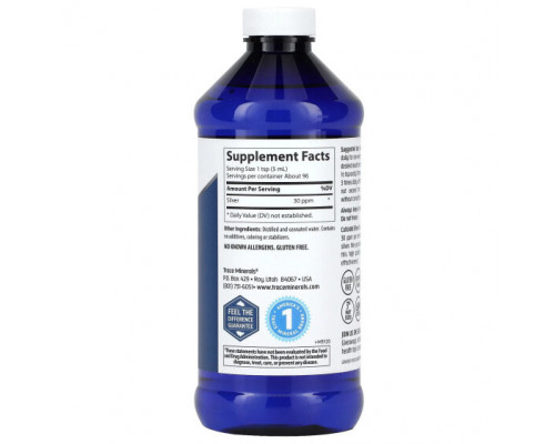 Описание добавки Минералы и микроэлементы Trace Minerals ®, Коллоидное серебро, 30 част. / Млн, 473 мл (16 жидк. Унций)