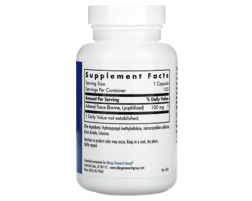 Описание добавки Allergy Research Group, Надпочечниковый препарат Натуральный железистый, 150 капсулы в растительной оболочке