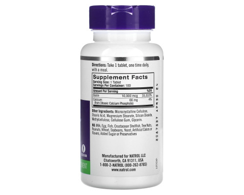 Компоненты добавки Natrol, Биотин, 10,000 мкг, 100 таблеток