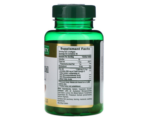 Способ приёма, инструкция применения добавки Nature's Bounty, Рыбий жир в миникапсулах, 1290 мг, 90 миникапсул с покрытием