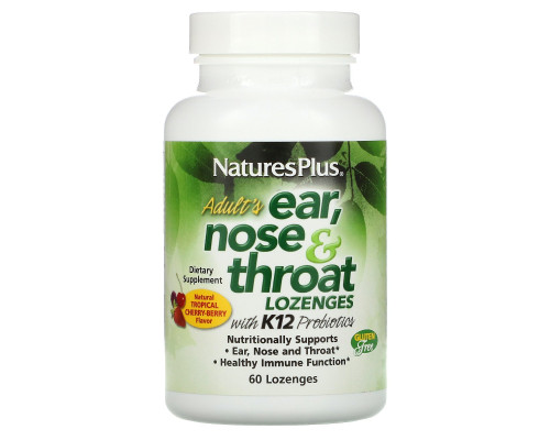 Nature's Plus, Добавка для взрослых «Ухо, Горло, Нос» со вкусом вишни - 60 таблеток для рассасывания, обеспечивающие здоровье лор-органов. Препарат повышает местный иммунитет. С его помощью восстанавливается здоровая микрофлора в ушах, горле и носу. Таблетки с вишневым вкусом пакуются в непрозрачные герметично закрытые флаконы. Они сохраняют свои свойства на протяжении всего срока годности, так как к ним ограничен доступ влаги и солнечного света.