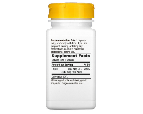 Компоненты добавки Nature's Way, Folic Acid, 800 mcg, 100 Capsules