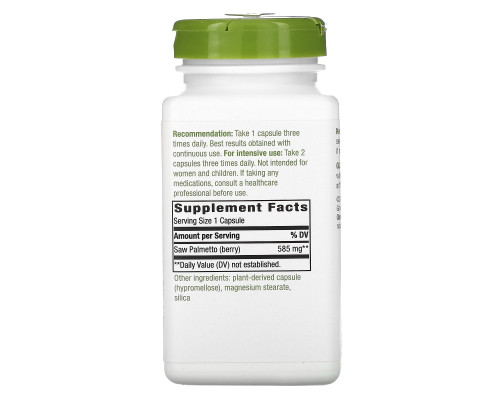 Способ приёма, инструкция применения добавки Nature's Way, Ягоды серенои, 585 мг, 180 вегетарианских капсул