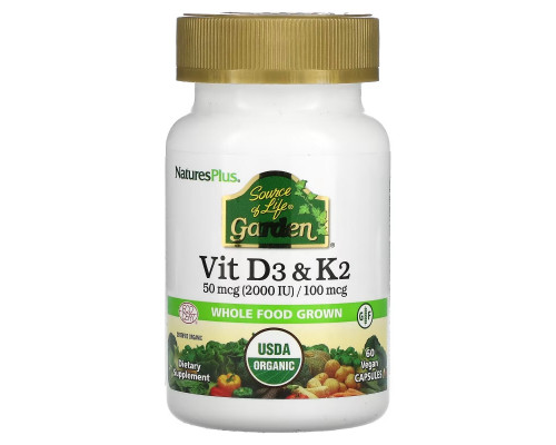 60 шт.Описание добавки NaturesPlus, Source of Life Garden, Vit D3 & K2, 60 Vegan Capsules