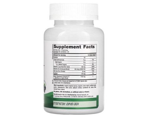 Компоненты добавки Nordic Naturals, Nordic Immune Gummies, Elderberry , 40 Gummies