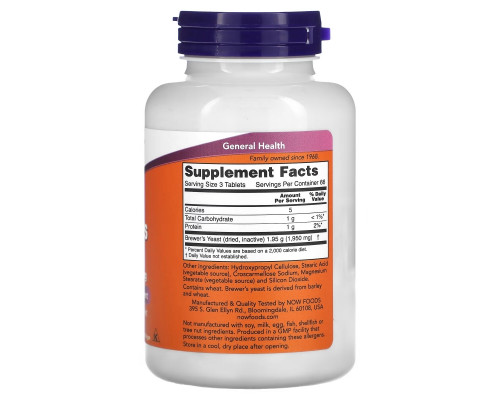 Компоненты добавки Now Foods Пивные дрожжи 650 мг 200 таблеток