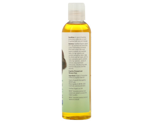 Компоненты добавки Now Foods Solutions Органические масло жожоба, для питания кожи, волос и тела, 8 жидких унций (237 мл)