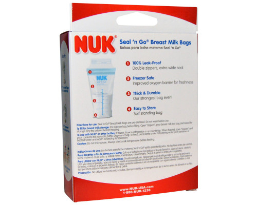 Описание добавки NUK Seal 'n Go Breast Milk Bags 25 Storage Bags 6 oz (180 ml) Each