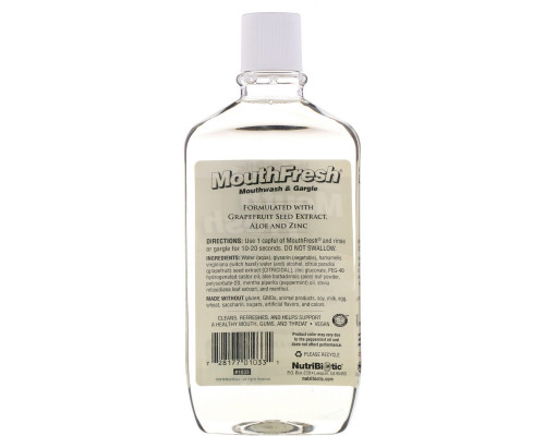16 жидких унцийОписание добавки NutriBiotic MouthFresh Натуральная жидкость для полоскания рта освежающая мята 16 жидких унций (473 мл)