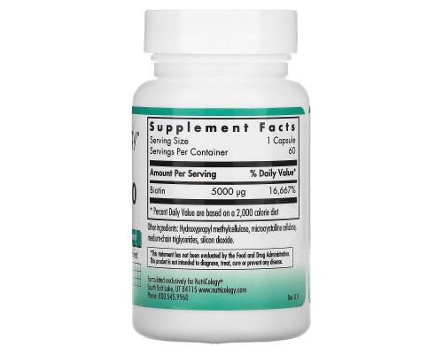 60 шт.Описание добавки Nutricology Биотин 5000 60 капсул в растительной оболочке