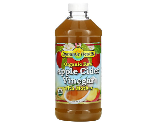 Описание добавки Dynamic Health Laboratories, Organic Raw Apple Cider Vinegar with Mother, 16 fl oz (473 ml)